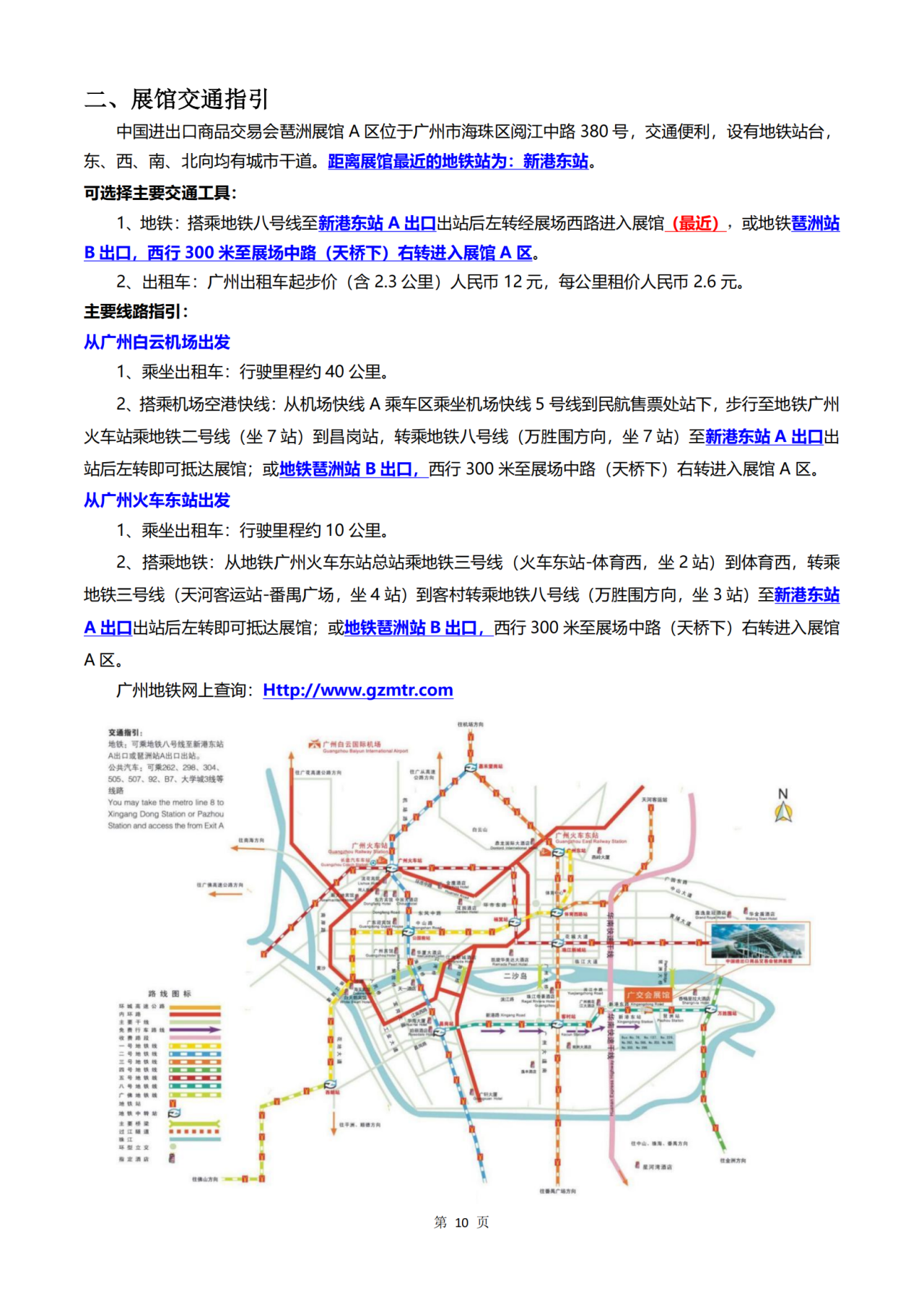 Subway Travel: (1) Guangzhou Baiyun International Airport: Arrive at Guangzhou Baiyun International Airport from various countries or regions. If you start from the north of the airport (Terminal 2) and take the subway to the A Zone of the Canton Fair Exhibition Center, the estimated total travel time is about 1 hour and 15 minutes (for reference). Taking the example of the airport north (Terminal 2) station (note: the airport south (Terminal 1) is the next station after the airport north): At the airport north (Terminal 2) station (the starting station), take the subway Line 3 (heading towards Shitai West Road, 14 stops) → Shitai West Road station (get off and transfer to Line 3 (heading towards Haibang, 3 stops)) → Keji Village station (get off and transfer to Line 8 (heading towards Wanshengwei, 3 stops)) → Exit at the A Gate of Xingang East Station. Then you can proceed to the exhibition hall through Gate 6. (2) It is estimated that the total travel time from Guangzhou South Railway Station (high-speed railway station) to Area A of the Canton Fair Exhibition Center by subway is about 51 minutes (for reference only). Transfer from Line 2 to Line 8: Take the subway Line 2 from Guangzhou South Railway Station (starting station) (heading towards Jiahe Wanggang, 8 stops) → Get off at Changgang Station and transfer to Line 8 (heading towards Wanshengwei, 7 stops) → Get off at Xingang East Station and exit through the A exit. Then you can proceed to the exhibition hall via Gate 6. (3) It is estimated that the total travel time from Guangzhou Railway Station (Guangzhou Station) to Area A of the Canton Fair Exhibition Center by subway is about 45 minutes (for reference only). Transfer from Line 2 to Line 8: At Guangzhou Railway Station, take subway Line 2 (heading towards Guangzhou South, 7 stops) → Changgang Station → Transfer to subway Line 8 (heading towards Wanshengwei, 7 stops) → Xingang East Station. Get off at Exit A and then proceed through the 6th Gate to enter the exhibition hall. (4) The estimated total travel time from Guangzhou East Station to Area A of the Canton Fair Exhibition Center by subway is approximately 37 minutes (for reference only). At Guangzhou East Station, take the subway Line 3 (heading towards Haibang, 5 stops) → Kezhu Station → Transfer to Subway Line 8 (heading towards Wanshengwei, 3 stops) → Exit A of Xingang East Station to reach the exhibition hall. (5) The estimated total travel time from Guangzhou Baiyun Station to Area A of the Canton Fair Exhibition Center by subway is about 60 minutes (for reference only). At Guangzhou Baiyun Station, take the subway Line 12 (heading towards Xunfenggang, 1 station) → Julong Station → Transfer to Line 8 (heading towards Wanshengwei, 20 stations) → Exit A of Xingang East Station to reach the exhibition center. Longxin Booth: 4.1 Hall, D401